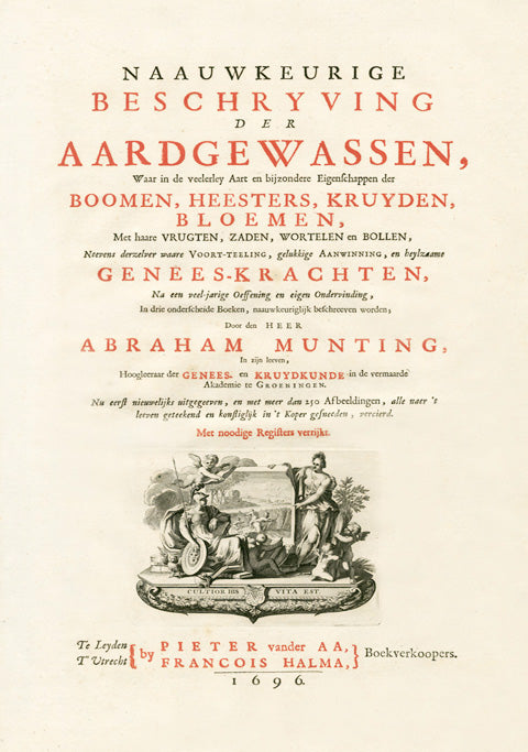 Abraham Munting was a Dutch botanist and botanical artist. Munting's best known work Naauwkeurige Beschryving Der Aardgewassen(1696). The work enjoyed popularity, partly because of its departure from traditional botanical illustration, in that plant species were depicted against a background of classic or pastoral landscapes, often floating in midair with little regard for perspective and relative sizes.